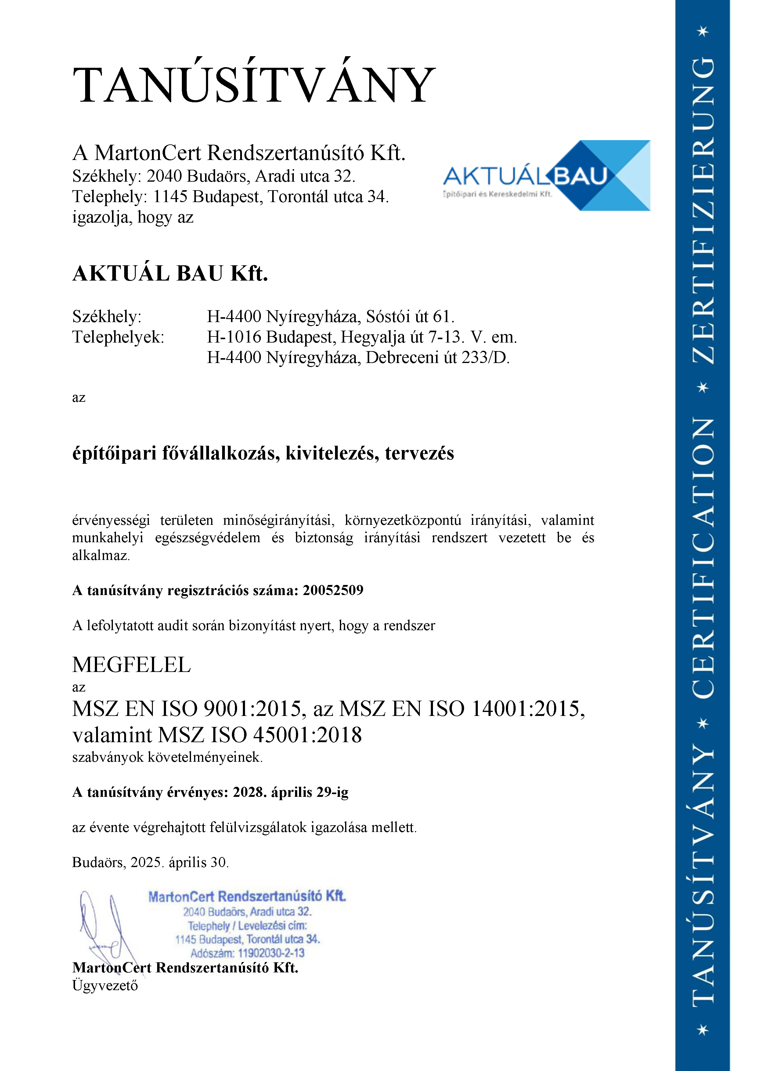 - Építési projekt koordinálása szoros együttműködésben a megrendelővel, idegen nyelven is